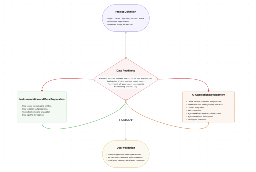 When the project is ready to begin, the first Data Readiness activity bootstraps the project with the initial selection of data and goes on to locate more data and ensure it is of the quality and reliability to make the AI Application work.